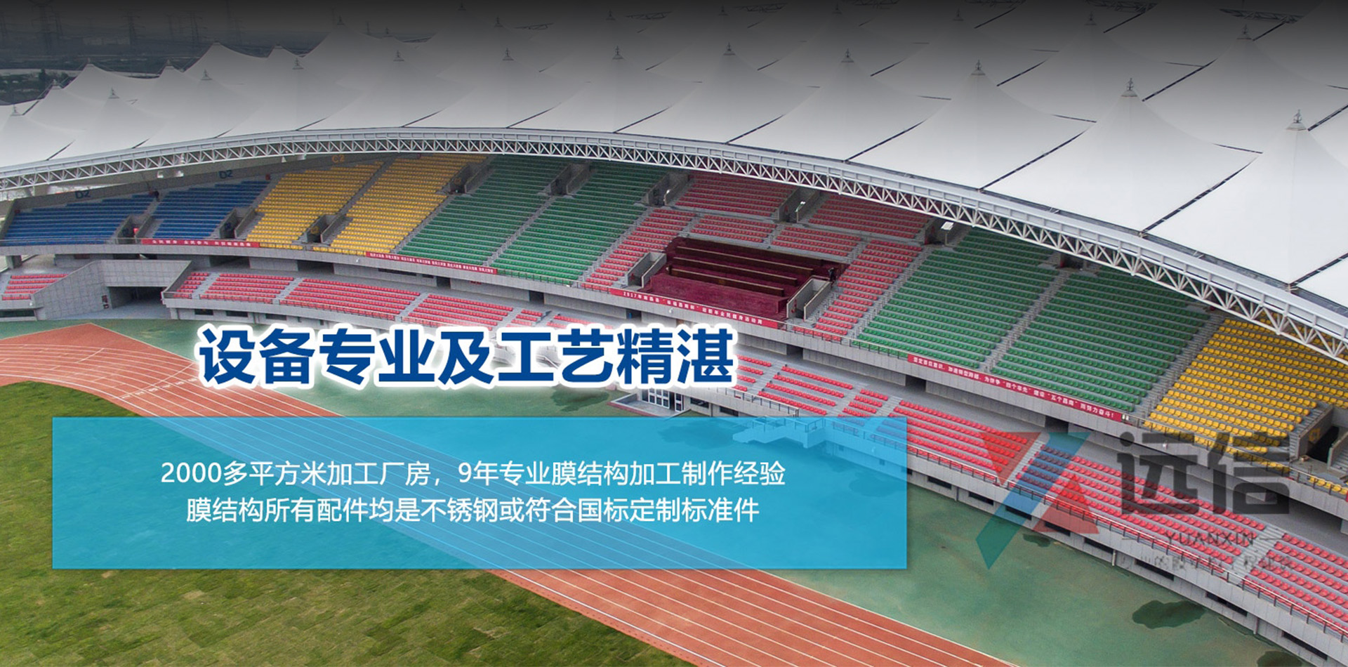 在生產制造方面,為了保證膜結構安裝質量和使用年限,遠信膜結構工程公司采用了現代化的生產車間,公司擁有完整的專業膜材檢測設備、自動裁剪設備、大型軌道行走式PTFE及PVDF熱合設備。同時,公司擁有豐富的膜結構計算分析、設計與施工經驗,集設計、制作、安裝為一體。